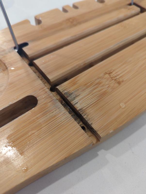 Exactly as advertised, fits my tub, holds my wine, book , and other bath necessities.