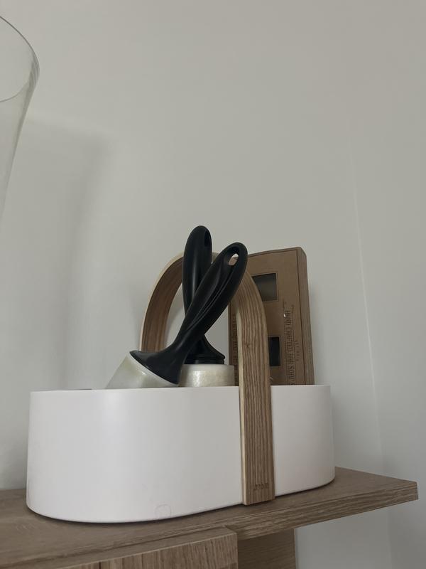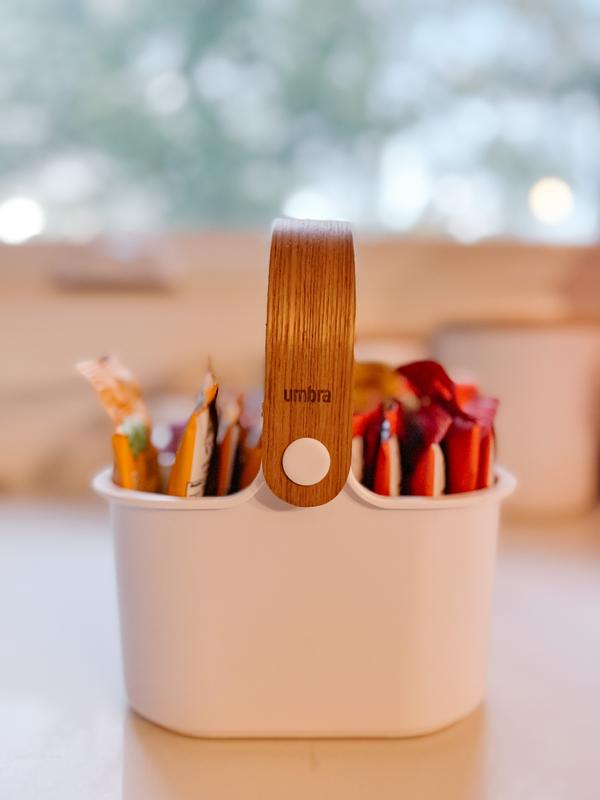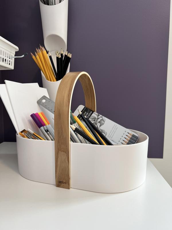 Fulfilling a need . Instead of a jumble of stuff on the shelf in our bathroom , falling over and making such a clutter. I’ve happily solved the problem with the Umbra basket .Every thing fits into it and is easily seen when needed . So much so that I have bought them as gifts for my granddaughters hoping they to will find them as useful as I do. Both practical and Attractive !