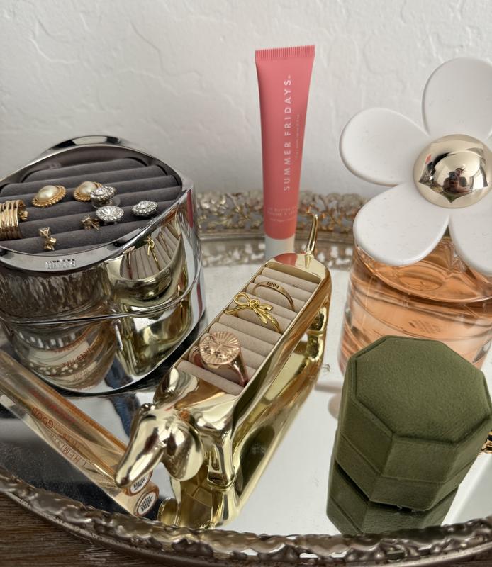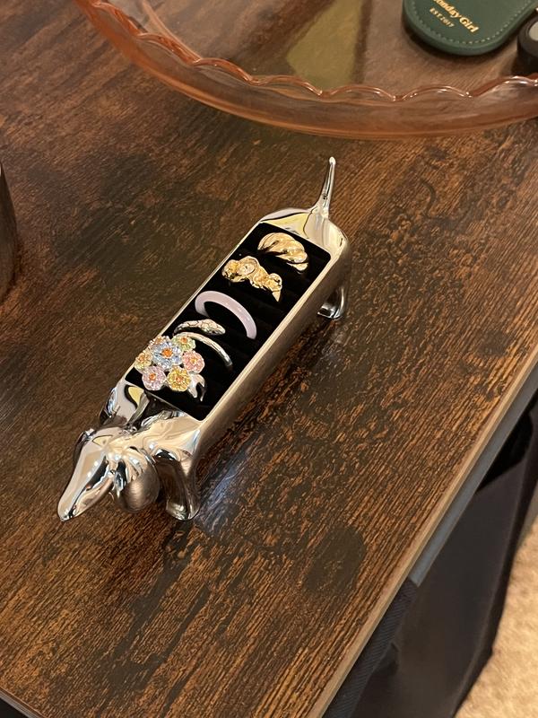 She loves putting her rings on the holder when she takes them off. It dresses up her makeup table.