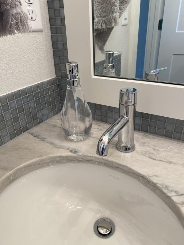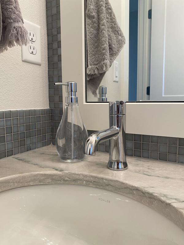 I am very pleased with the two Droplet Soap Pumps I purchased. The design makes this easy to use under warm/hot water and the acrylic would undoubtedly survive any accidental dropping. Also, the pump is very beautiful and makes a lovely addition to my bathroom.