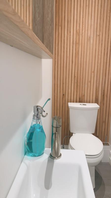 Perfect design for a modern bathroom. Loved the gray-blue colour.
