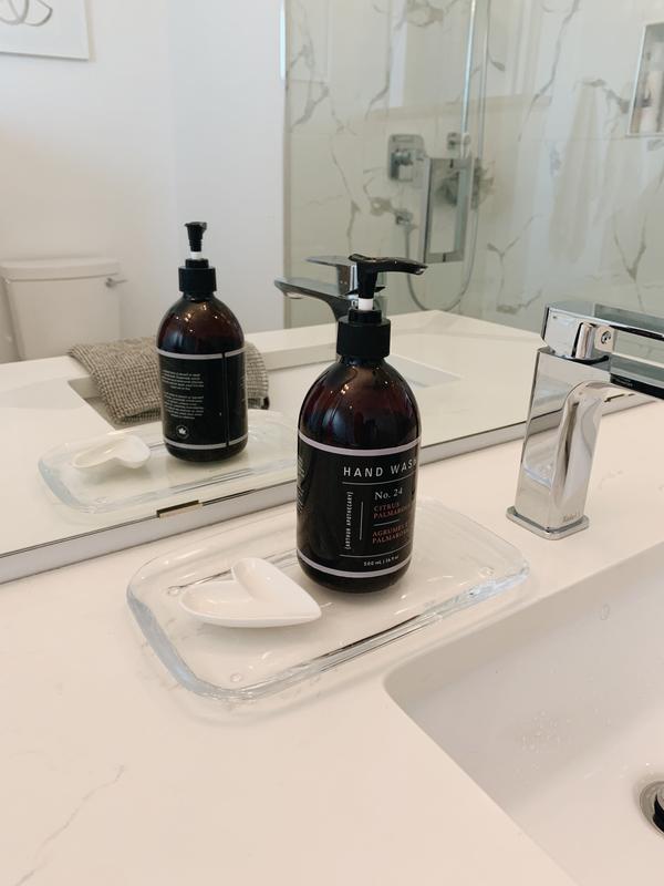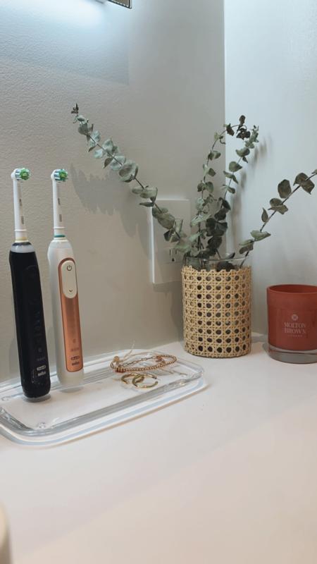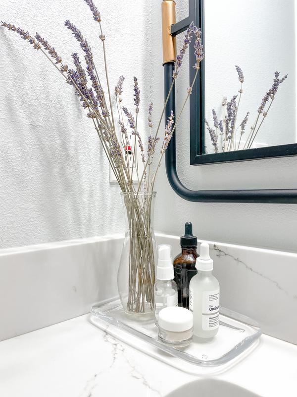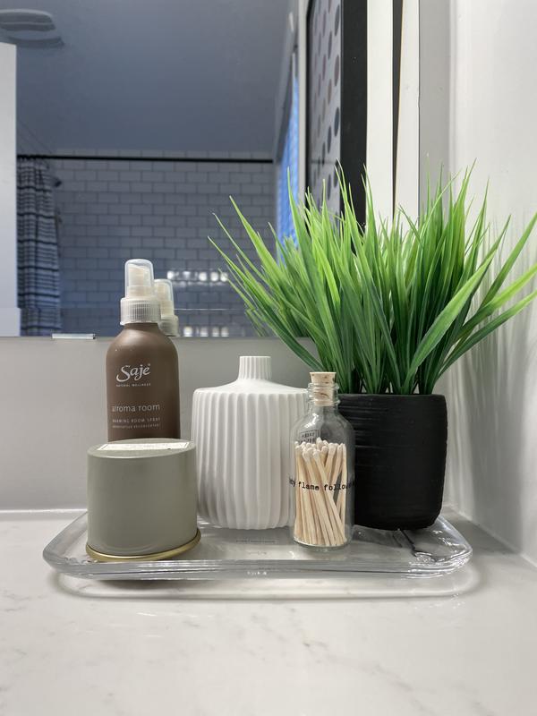 A simple but stylish tray that is a great catch all for bathroom necessities.
