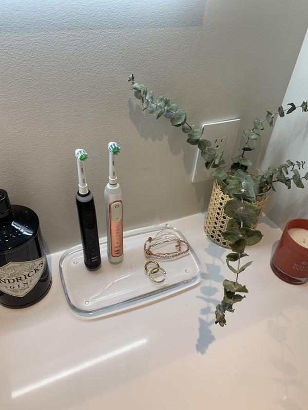 So gorgeous. Elevates my bathroom sink and is super easy to clean. The tray is great quality and looks nice on my sink. Perfect size for a soap bottle and tooth brush holder.