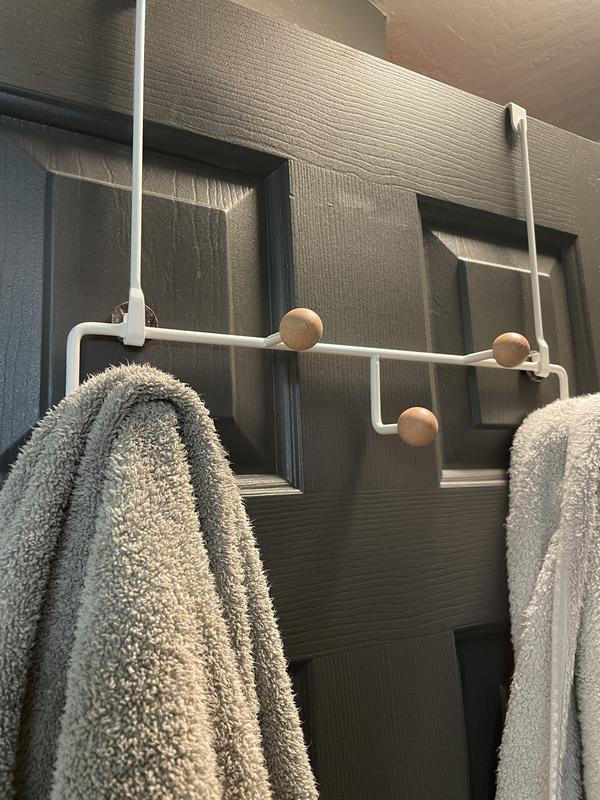 This over the door hook is lovely and modern and the wooden balls give it a nice Boho/scandi vibe. It took seconds to put together, I didn't screw it into the door but the over door hooks do have the holes in for this option. I was worried that my towels would keep falling off with the smooth ball hooks but they haven't fallen off yet 🙌