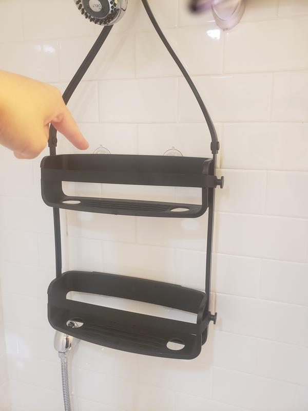 Great caddy. Love the white design. The suction caps keep it stable. Best to put heavy shampoos sideways to avoid them tipping over the holding bands but once I figured that out I still rate this a top product.
