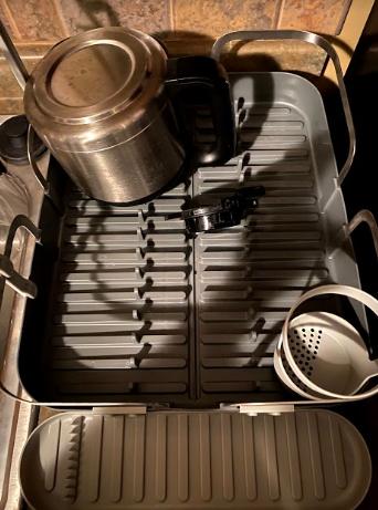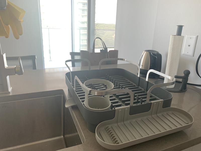 We have had our Holster dish rack for over a year now and we still love it. We also purchased the Udry Peg drying rack with mat to dry more dishes. We do not have a dishwasher so this helps a ton