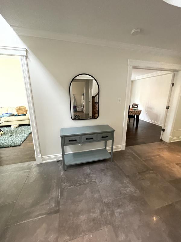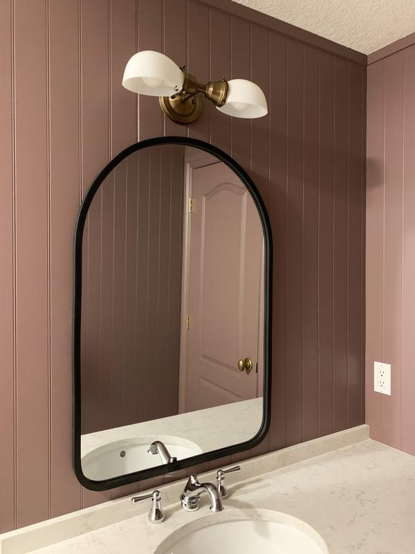 Got this mirror to hang in our bathroom above the sink. Installing it was easy to do and we love the look of the mirror. Overall great product and no issues.