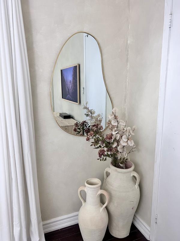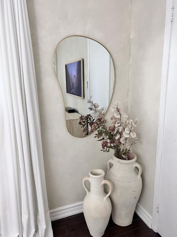 Beautiful and lightweight mirror! I really love the modern organic shape of the Pebble Wall mirror. It has a nice flow to it and I like that it can be installed vertically or horizontally. I decided on a horizontal lean on my office desk. I also really like the finish, it suits any space.