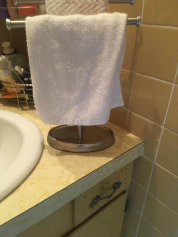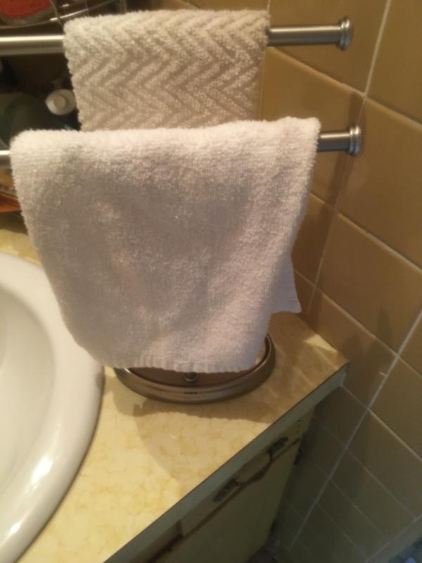 Too short! My hand towels drag on the counter. Otherwise, it’s a nice looking towel rack but I will have to buy different guest towels if I am going to use it.