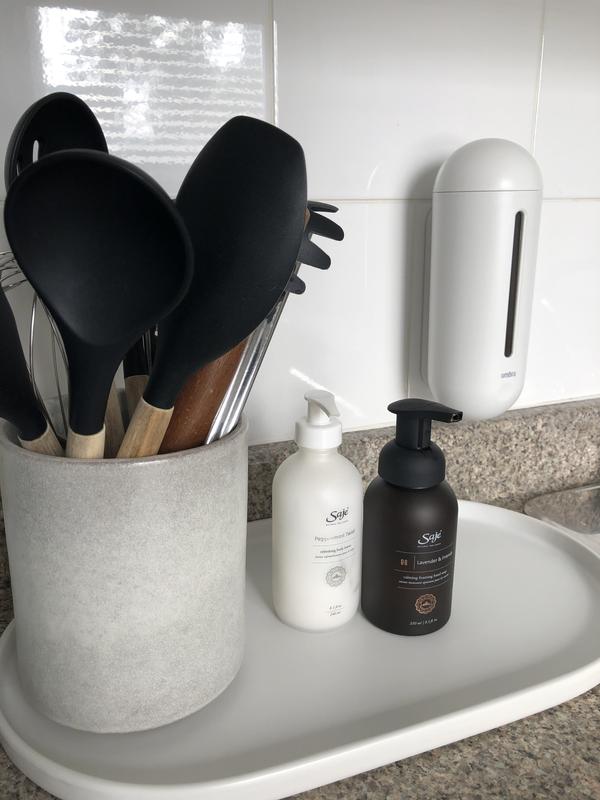 We’re minimalist and as much as possible we avoid countertop/sink clutter and this wall mount is just perfect!!