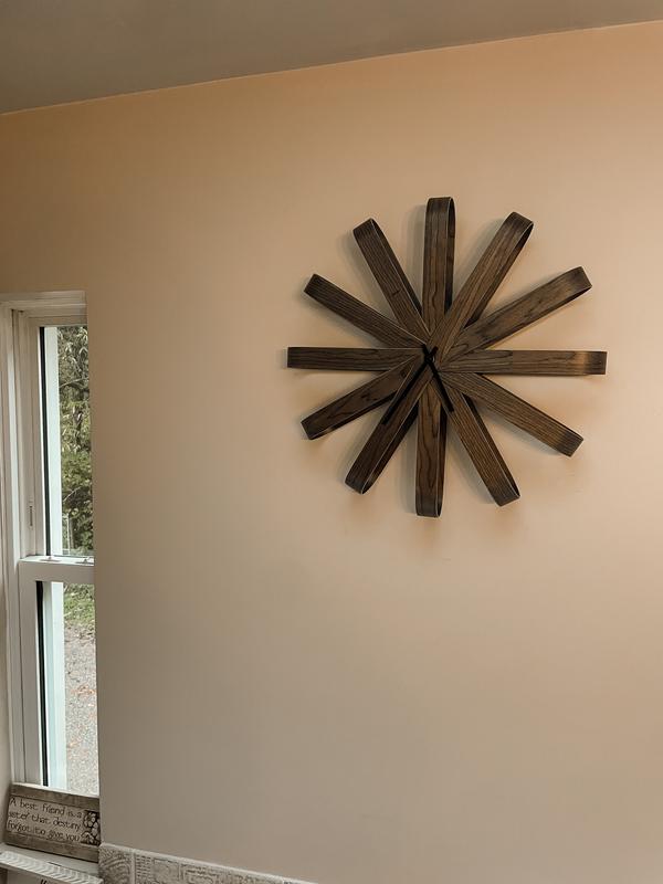 We love our Ribbonwood wall clock! It is such a beautiful design compared to standard wall clock. It is truly a functional decor piece! Very easy to hang, sits flush against the wall.