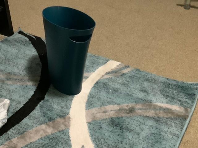 We love the look and size of this trash can. I had another one in a clear color and this one goes well in our bathroom.