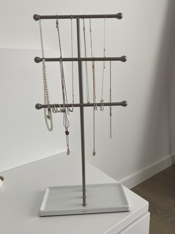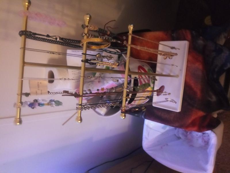This stand is a beautiful way to organize and display my necklaces. I keep it on the top of my dresser, and the necklaces stay untangled and neat.. I am very happy with my purchase.