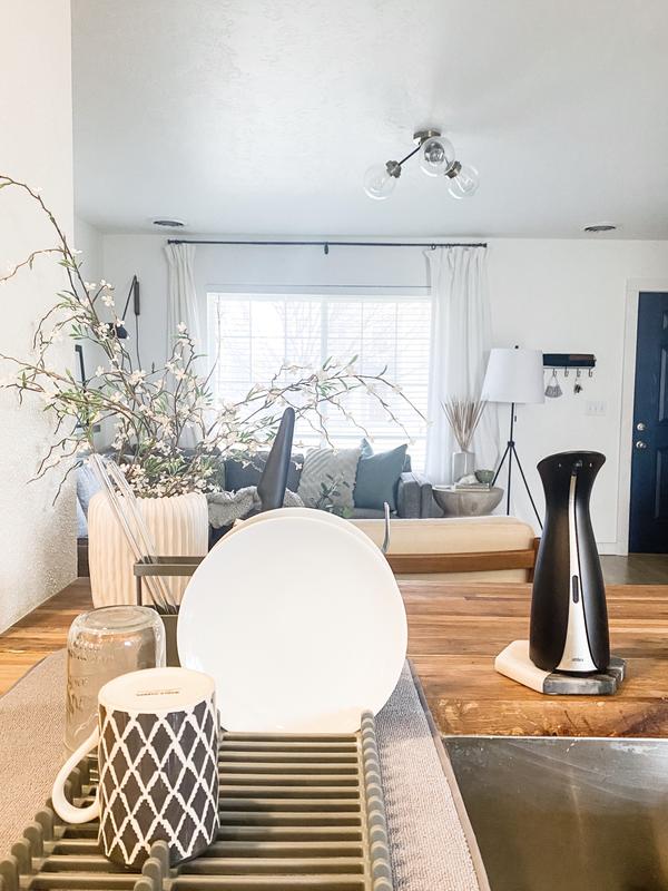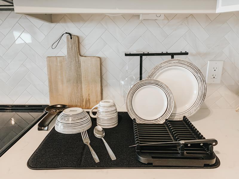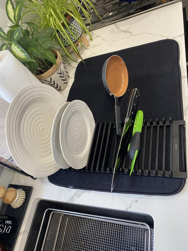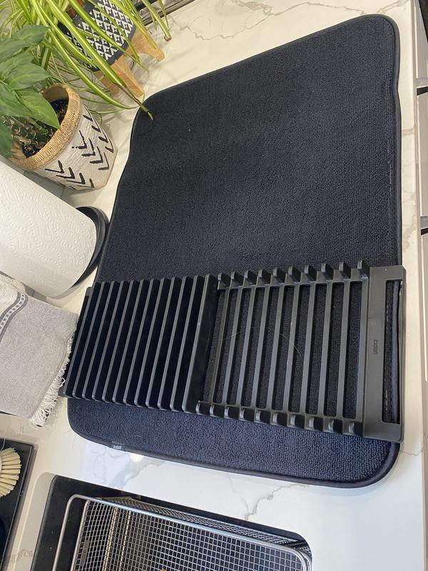 I love this dry mat for dishes. It has a low profile and when it needs to be cleaned, just pop it in the washing machine. I have two of these, so when one is drying, I can use the other one.