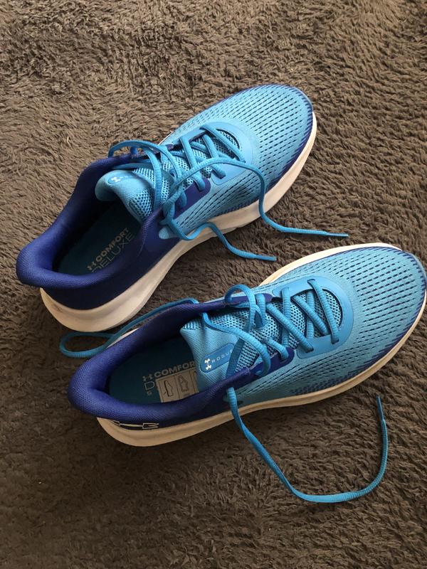 Purchased Rogue 5 trainers in blue a month ago on discount price, used for 5k park runs. Very comfy, light and seem well made. Possibly fractionally bigger than my previous under armour trainers and slightly tighter fit around ankle. However they fit very well and pleased with purchase and price seems great value. Happy to recommend.