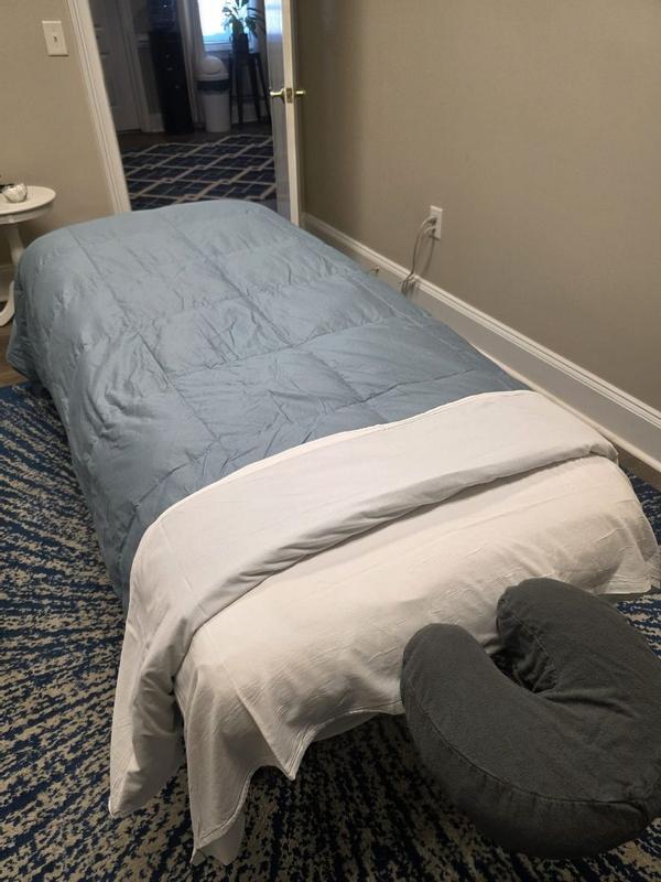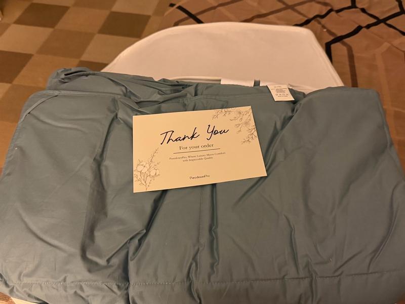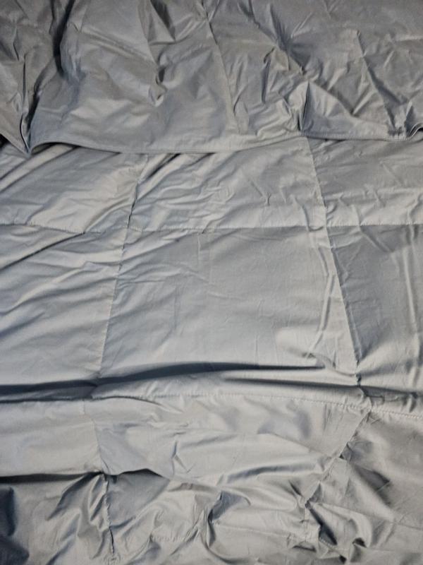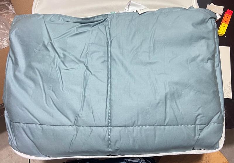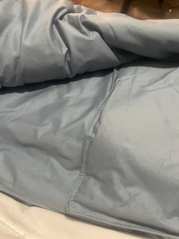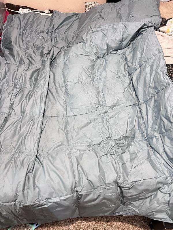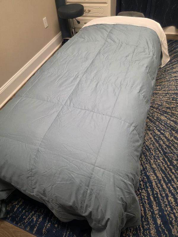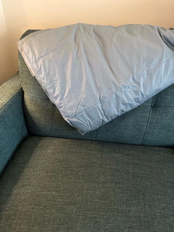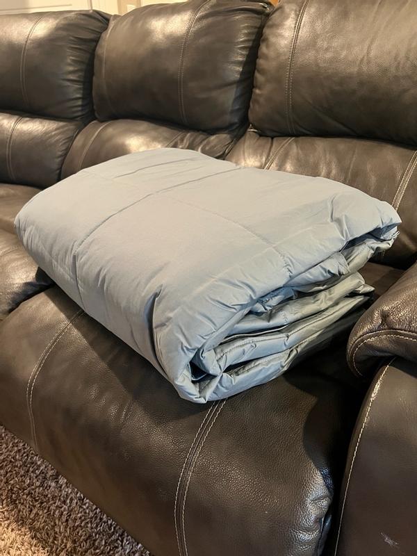 Really love this blanket! It’s a nice light blue color that goes great with my couch. It is lightweight but still keeps you very warm. Seems like a high quality, well make comforter that will last for a long time. I like the zippered bag it came in as well, that will be great for storing it when I’m not using it.