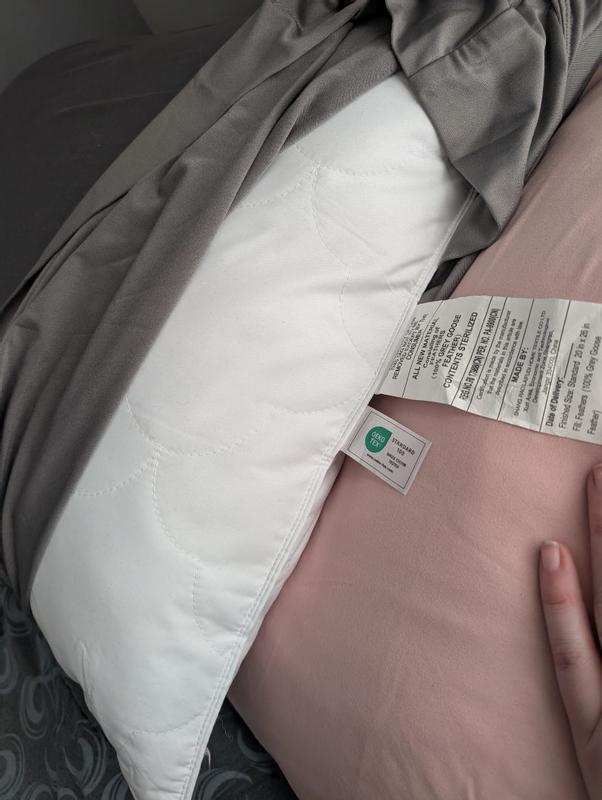 Absolutely love these Down Feather pillows! They're standard size & feel amazing. These pillows are fluffy & I've noticed no odor due to the feathers. I recommend these wonderful Down pillows if you're looking for the perfect pillows for great sleep!