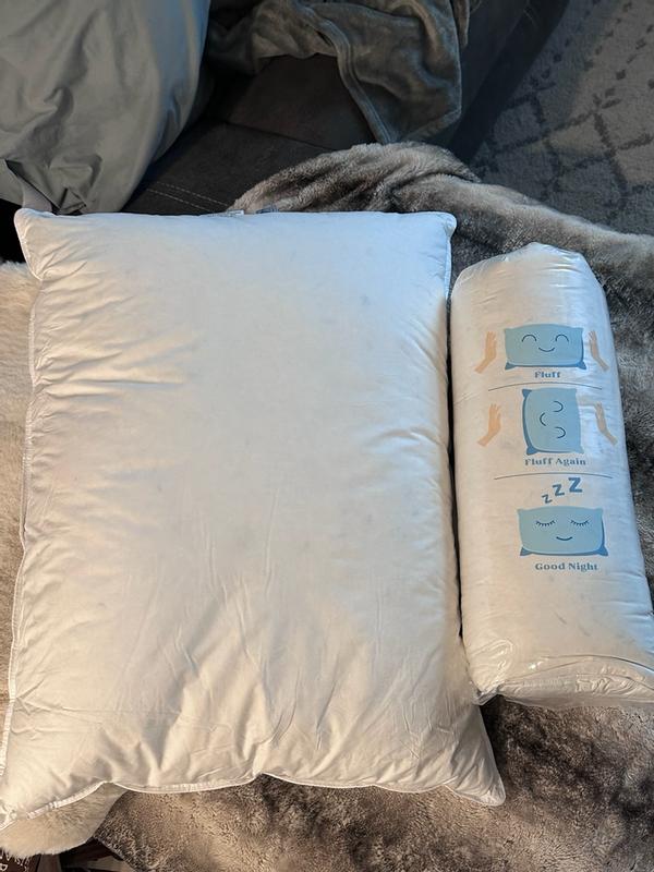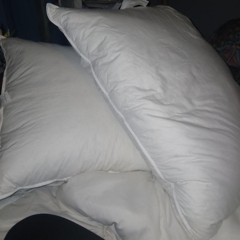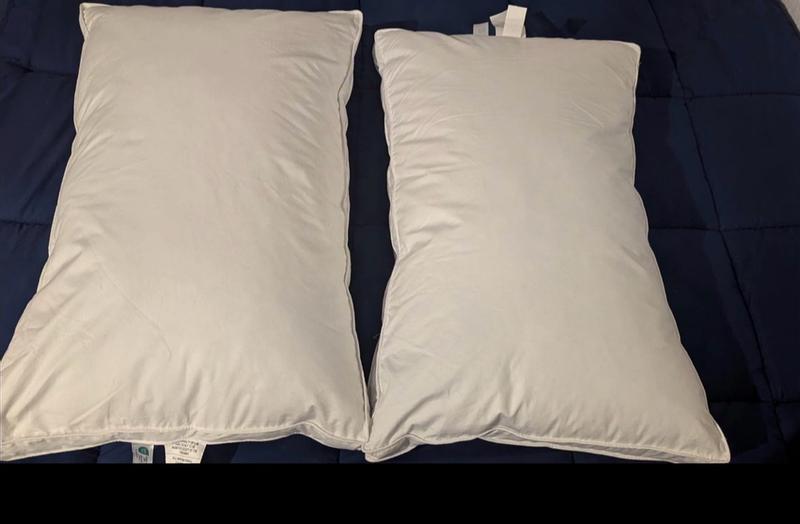 These pillow are so soft!! They are full of 100% goose feathers. They smell fresh. They are regular/queen size pillows. They are super plush. I love how they hug my head. They came in a 2 pack. They are definitely high quality pillows. They are worth trying for sure. If your looking for an ultra comfortable pillows go try these out for yourself.