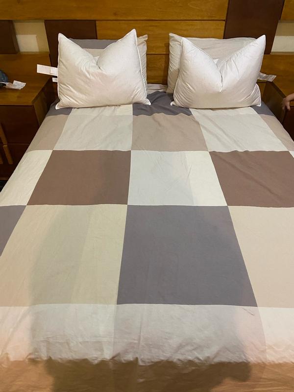 I am reviewing the Unikome Down Around Cotton 2 Pack Pillows Standard. They came rolled up, but expanded so quickly and easily fluffed. They are a nice thickness and soft. They support my neck, and they are not firm. I really like them.