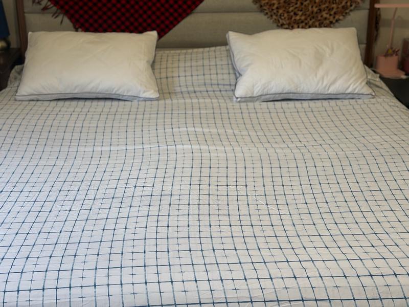 I love getting fresh new pillows for the bedroom. These fluffy down pillows with crisp cotton fabric felt wonderful. I like the detailed blue piping on the pillows. I’m a back sleeper so these pillows are perfect for me. It’s easy to fluff up back into shape. I slept very well with these pillows. So happy with these pillows.