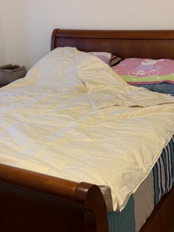I’m really happy with this comforter! The organic cotton cover feels soft and breathable, and the filling is light but still warm enough for everyday use. It has a nice balance — not too heavy, not too hot — making it perfect for people who prefer a lightweight comforter. I also like that it’s machine washable, which makes cleaning so much easier. The quality is great, with neat stitching and no loose feathers poking out. Overall, it feels cozy, eco-friendly, and well-made — definitely a good buy for comfortable and healthy sleep.
