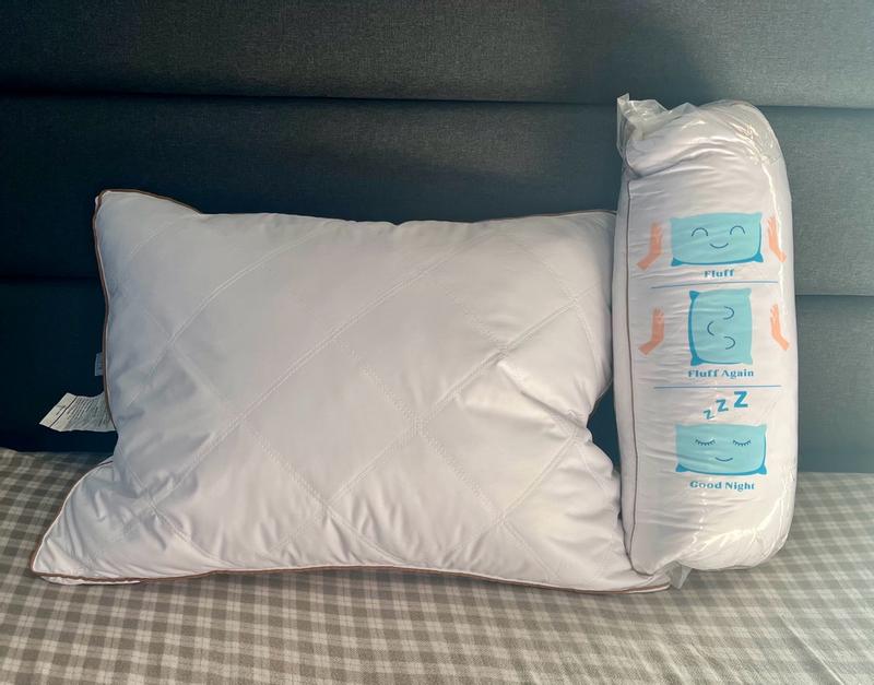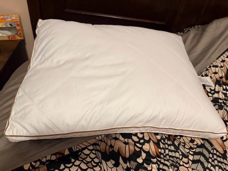 While these are well made pillows, they are personally not my favorite. I find that they are smaller than any other standard pillow that I have in my house. Upon arrival they are rolled up and vacuum sealed so it does take some time to get them to fluff up. They do flatten throughout the night and I often find myself reaching for another pillow because my head sinks in too far. Nice quality pillow. No weird smells. No feathers poking through. Little bit of a crunching noise. I wish I liked them more than I do.