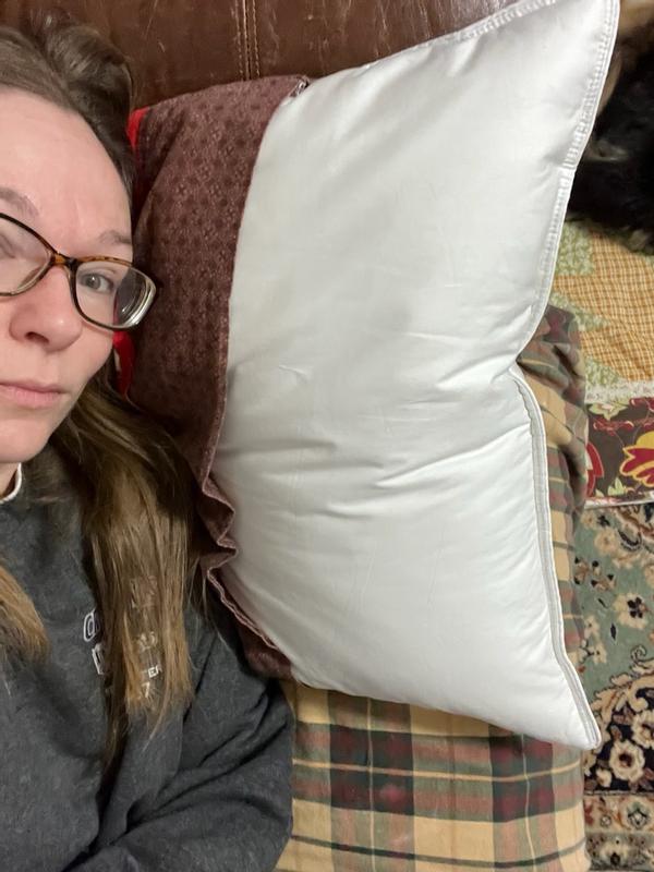 I think this pillow is great, fluffy, nice construction, not many complaints. I would say the only thing I noticed it’s not super full so it does flatten quite a bit when you lay on it. I think that is preferential though, depending on how much fluff you like and what sleep position you sleep in. I don’t have allergies so I had no issues with the feathers. Packaging was simple, and compact, and the pillow are well priced.