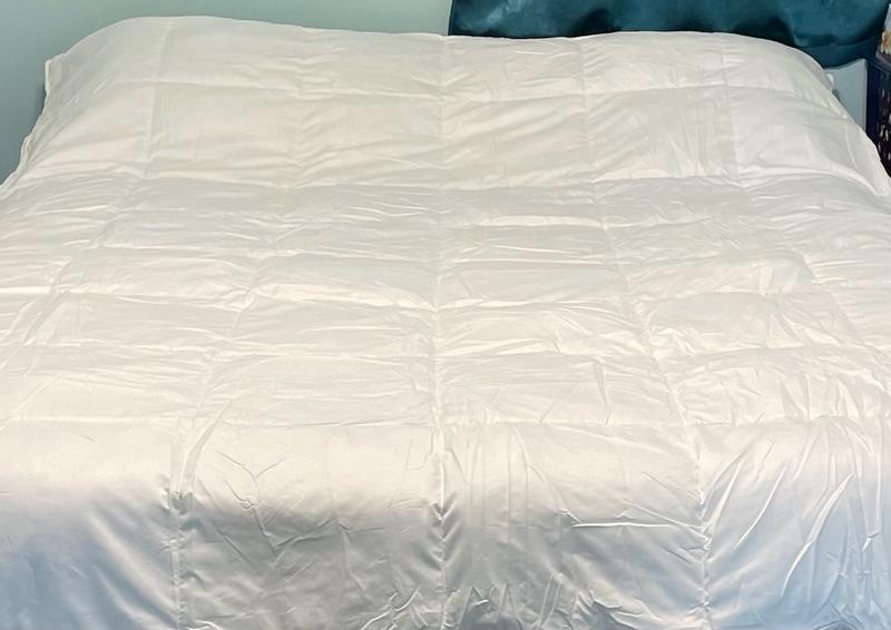 The weight of this comforter is nice and evenly distributed, and that part works well. However, I didn’t like the material at all. The fabric feels uncomfortable and kind of ruins the overall experience for me. Because of that, I’m not sure it would be comfortable for daily use. It also feels a bit too cold to use in the winter, so it might be better suited for summer or warmer weather. Overall, it has potential because of the weight, but the fabric is a big downside.
