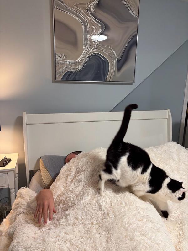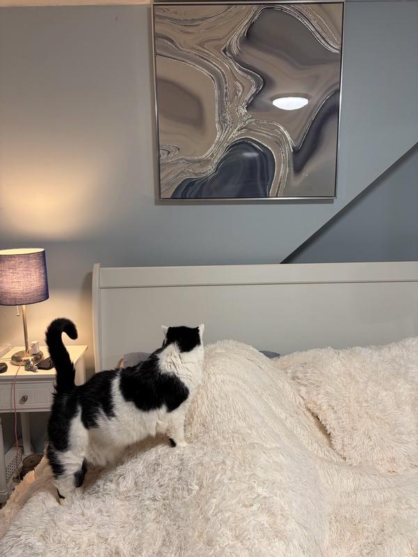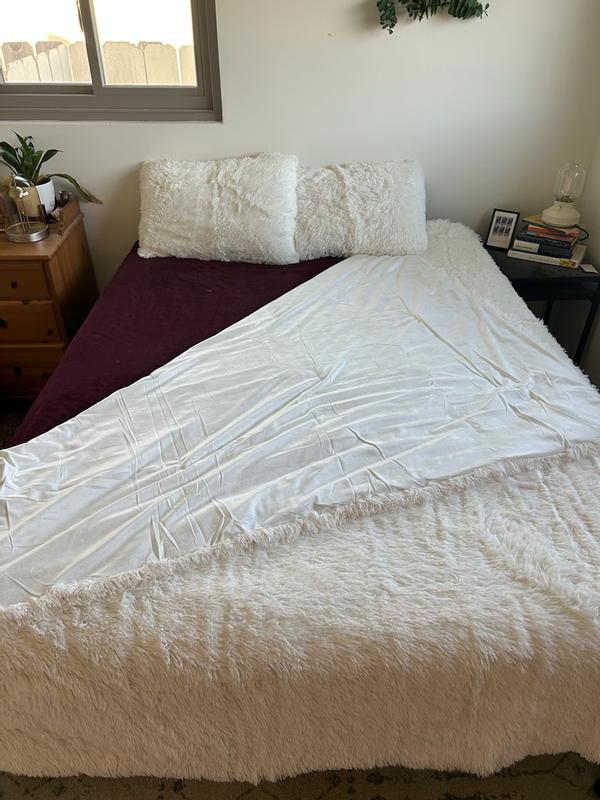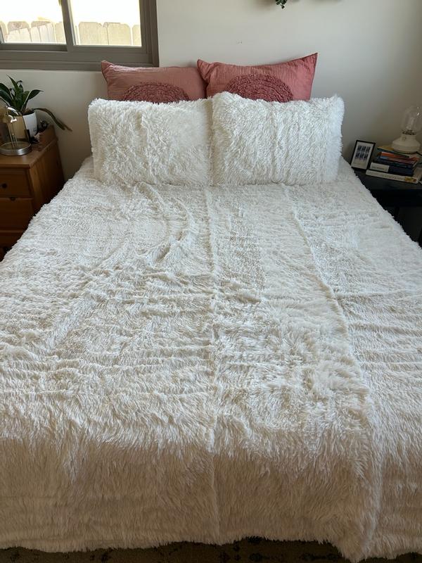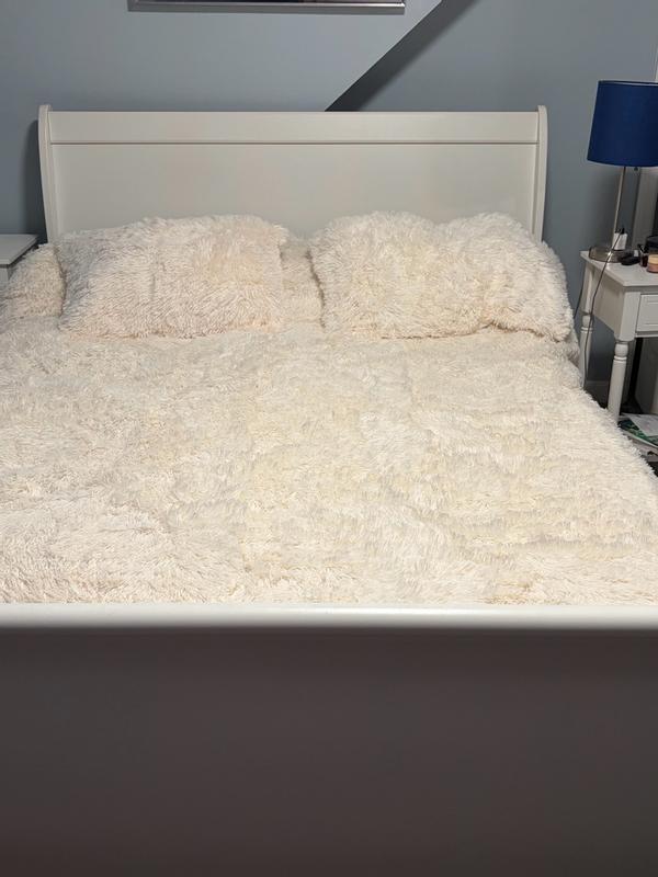 We love this comforter. It is so warm and cozy. It looks really great in our bedroom. We love the faux fur. It not only looks great but you don’t have to worry about wrinkles either.