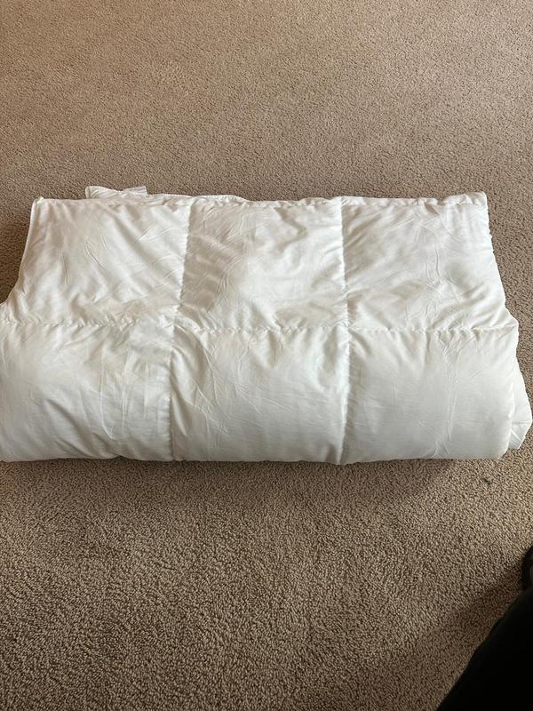 This comforter is the perfect light weight down comforter. It feels super soft and goes very well with my bedroom decor. I’m not a fan of big chunky comforters so for me this is amazing and it’s a true white color so that’s awesome too!