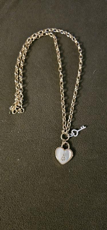 UnwrittenCubic Zirconia Key and Genuine Mother of Pearl Inlay Stone Heart Necklace