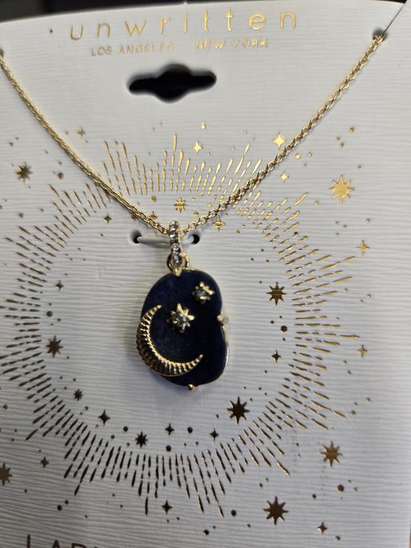 The pretty lapis background caught my eye and I thought it would make a great gift for a relative who loves jewelry with moons, suns and stars. When it arrived, I was impressed and showed it to my daughter. I am back to purchase another one for her birthday. It is a perfect size. very pretty and looks like it is well made and durable. i only wish it came in a box rather than a cellophane envelope with cardboard backing.