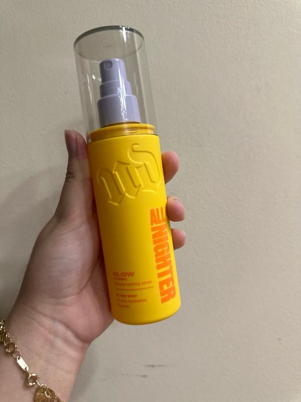Love the brand Urban Decay and have been using it for years. This is the first time using this glowy setting spray and honestly this gives a dewy glow finish and it lasts a long time almost all day. It gives even coverage as well.