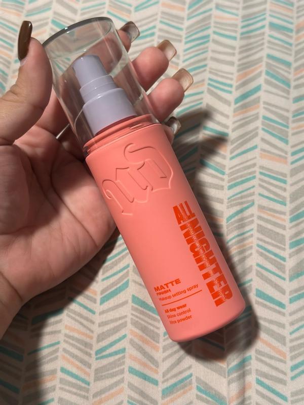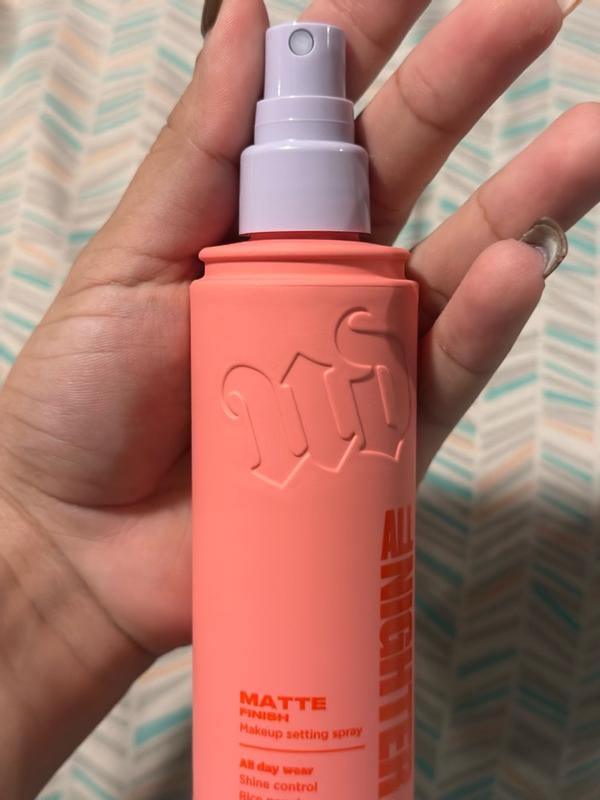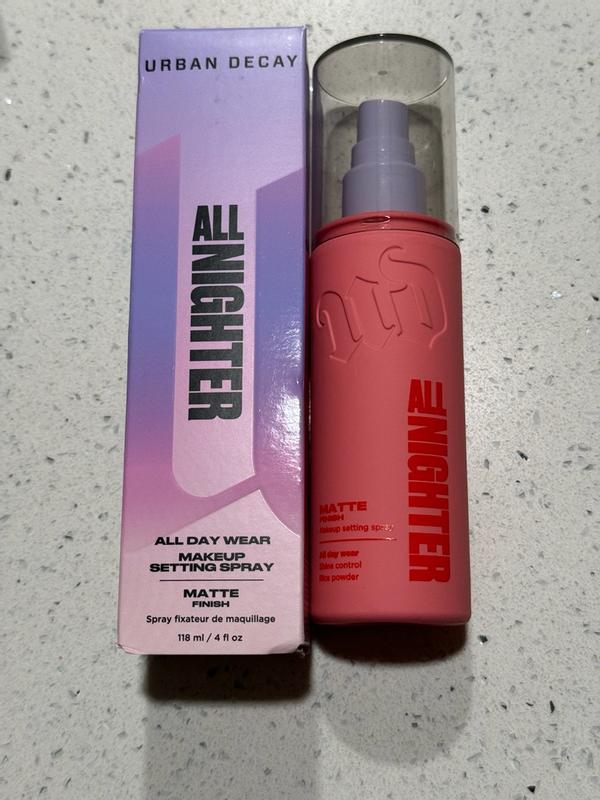 I absolutely love the Urban Decay All Nighter Matte Setting Spray! The packaging is super cute and easy to use, and the mist is fine and even — no big droplets on my face. It really helps control shine and keeps my makeup in place all day, even in heat or humidity. I have combination skin, and this spray keeps my T-zone matte without feeling dry or heavy. I’ve tried several setting sprays, but this one truly makes a difference in how long my makeup lasts. It’s perfect for long days, nights out, or special occasions. Totally worth it and definitely a must-have in my makeup routine! 💄✨ That image is when I applied the product all night! 🥹💜