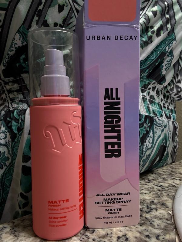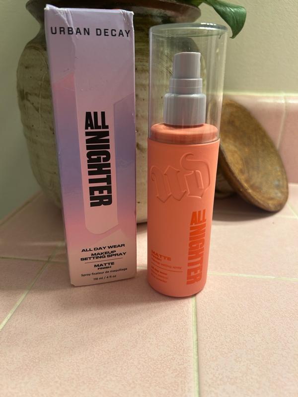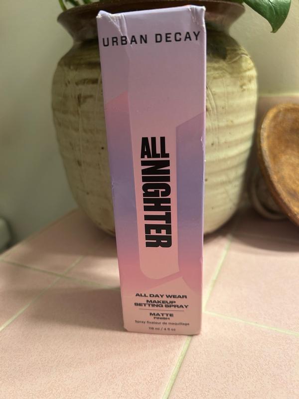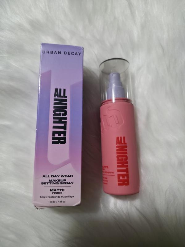Urban Decay's #1 All Nighter Setting Spray, upgraded with up to 24-hour wear and a new ultra-fine mist that primes, blends and sets makeup in place. Waterproof, perspiration resistant and transfer resistant. The formula leaves a natural finish with a soft-focus blur.