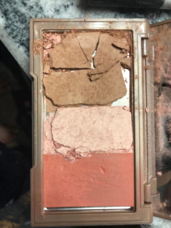 Love the colors but broke apart the moment I touched it with my brush! My husband gave it to me for Christmas and I now have to carry it inside a plastic bag so that it doesn´t stain everything inside my purse.