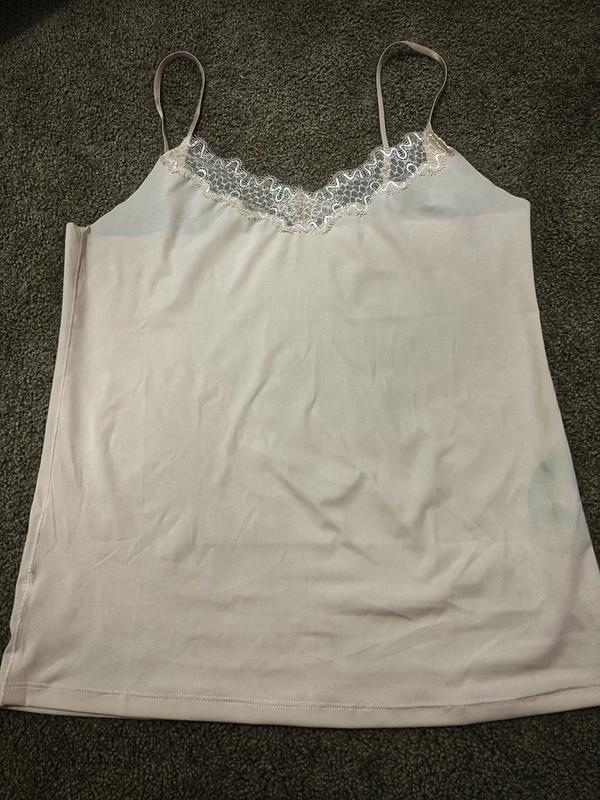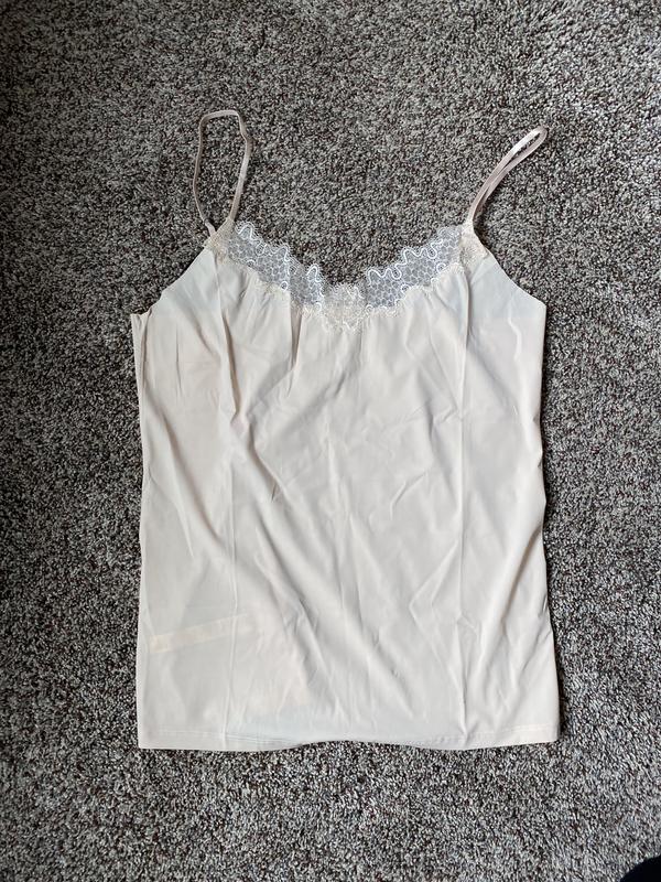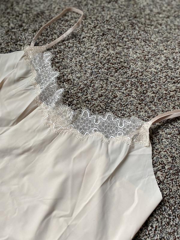 This is, by far, the softest shirt I own now. It’s my go-to sleep shirt because of how seamless it is. I sleep on my side and hate having any seams or fabric bunching against me. It’s stretchy but also firm. It’s also a thicker material but still feels airy. To me it just seems like it will hold up in the wash and through many wears. I really have only worn this one at night because it looks like sleepwear/lingerie to me. I would love to try this material in a basic cami without any lace. I’d definitely wear it as an undershirt. Thanks to the Stellar Product Testing Panel for providing me with this women's camisole.