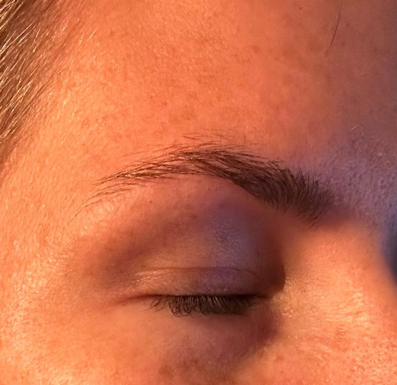 I like the fine tip which allows you to make hair strokes. I probably could use a different color but overall this works great for filling in your brows.
