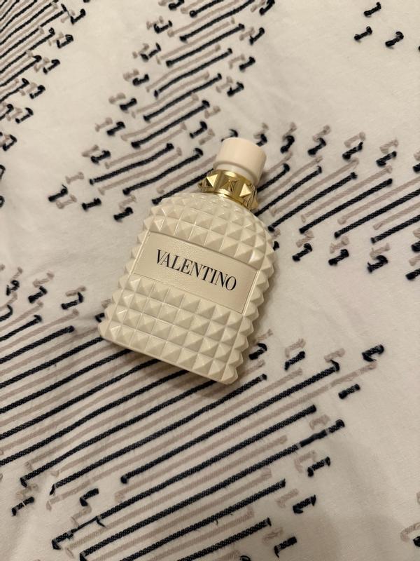 Valentino Uomo Born in Roma Rendez-Vous Ivory blends creamy amber and smooth woods with subtle sweetness, creating a refined, modern, and effortlessly elegant scent perfect for day or evening wear.
