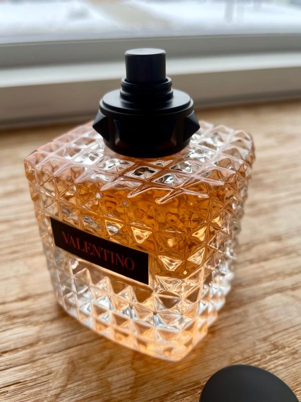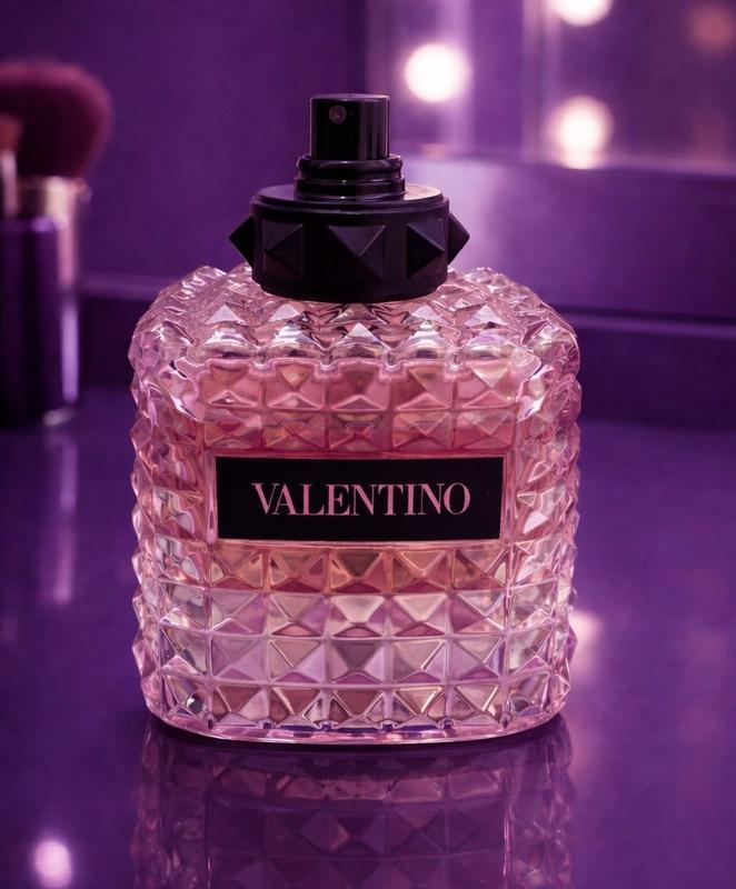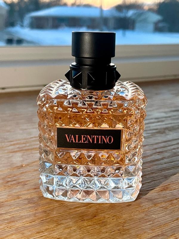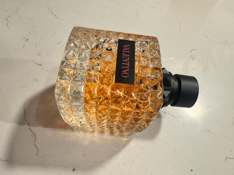 After trying the new Valentino Born In Roma perfume for a few weeks I can say that it’s very long-lasting and noticeable, without being overwhelming. The scent is sweet, fruity-floral with a warm dry-down. The bottle is cute, although a bit heavy. It feels luxurious and looks great on a vanity.