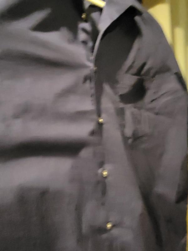 Nice black dress shirt no stays in collar and collar and neck is slightly more snug than expected as I upsized on purpose. Good deal and price bought on. Sale and online.