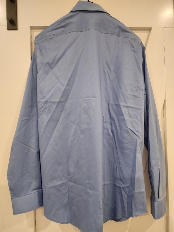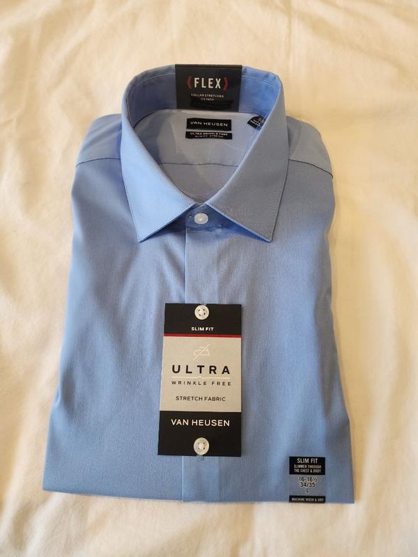 The Van Heusen Ultra Wrinkle Free dress shirt is really good quality. I gave it to my brother, and it has quickly become his go-to for the office. He really likes how lightweight and breathable the fabric feels. The photo shows a few wrinkles because he wore it straight out of the package. The regular fit is comfortable and doesn’t restrict movement, and the Blue Frost color is classic and easy to pair with different trousers and jackets. Overall, it’s a great everyday dress shirt.
