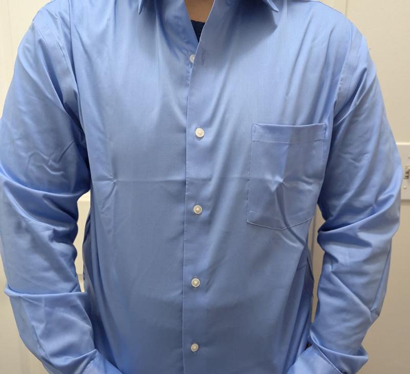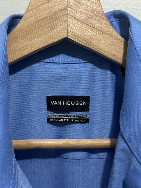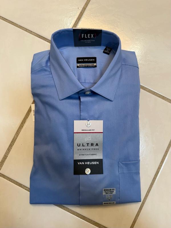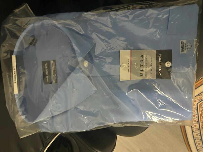 The Van Heusen Ultra Wrinkle Free dress shirt is really good quality. I gave it to my brother, and it has quickly become his go-to for the office. He really likes how lightweight and breathable the fabric feels. The photo shows a few wrinkles because he wore it straight out of the package. The regular fit is comfortable and doesn’t restrict movement, and the Blue Frost color is classic and easy to pair with different trousers and jackets. Overall, it’s a great everyday dress shirt.
