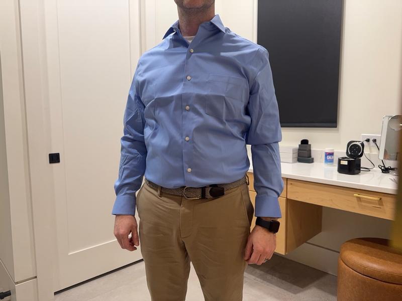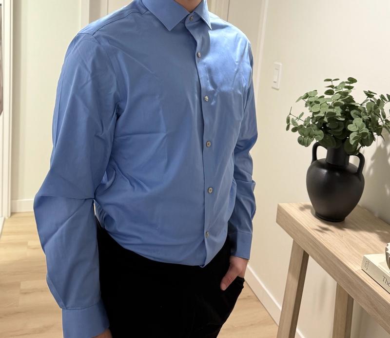 Great everyday dress shirt. The slim fit looks clean without being tight, comfortable, polished and low maintenance. The Blue Frost color is subtle but stylish.