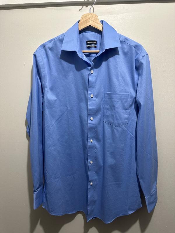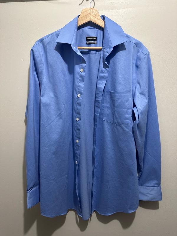 This Van Heusen dress shirt is great for work and formal occasions. The blue forest color looks sharp in person and pairs well with dress pants or a suit. The fabric feels comfortable and not stiff, even after a full day of wear. The wrinkle-free feature really helps and keeps the shirt looking neat with minimal ironing. The fit is true to size and gives a clean, professional look. Overall, it’s a solid, reliable dress shirt.