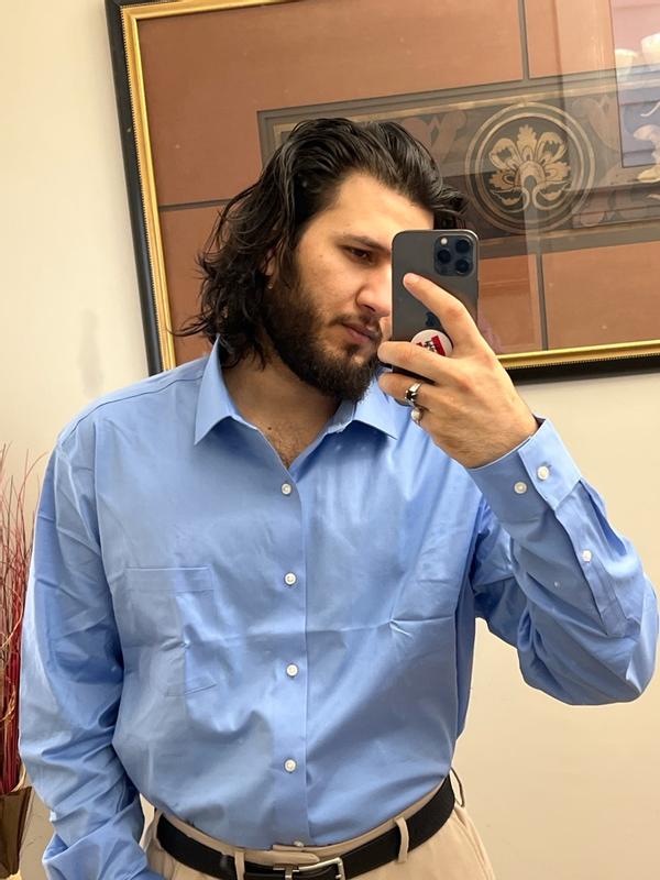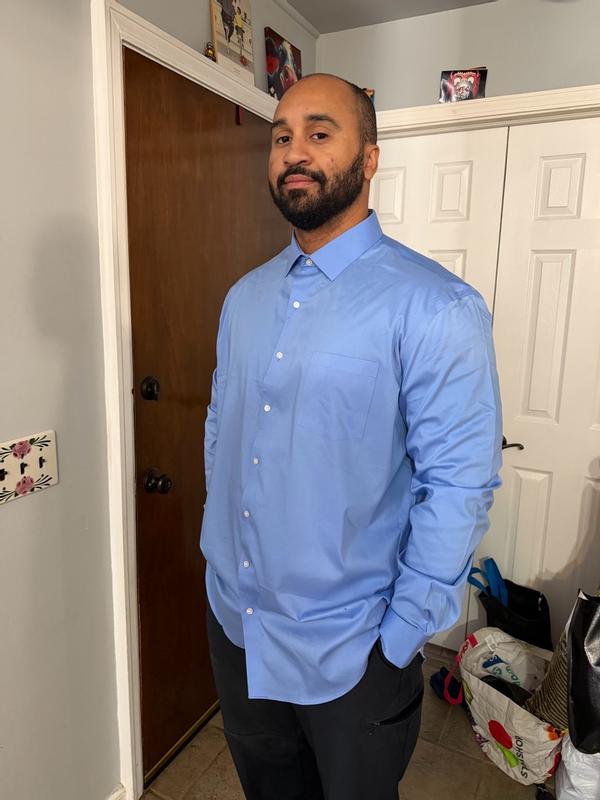 Really impressed with this long dress shirt for big and tall men. The quality feels solid, durability and comfortable, with a nice stretch that makes it easy to move in. The color looks clean and sharp in person, even better after trying it on. The fit is perfect—long enough in the sleeves and torso without feeling baggy. Definitely a great option for work or dressy occasions.