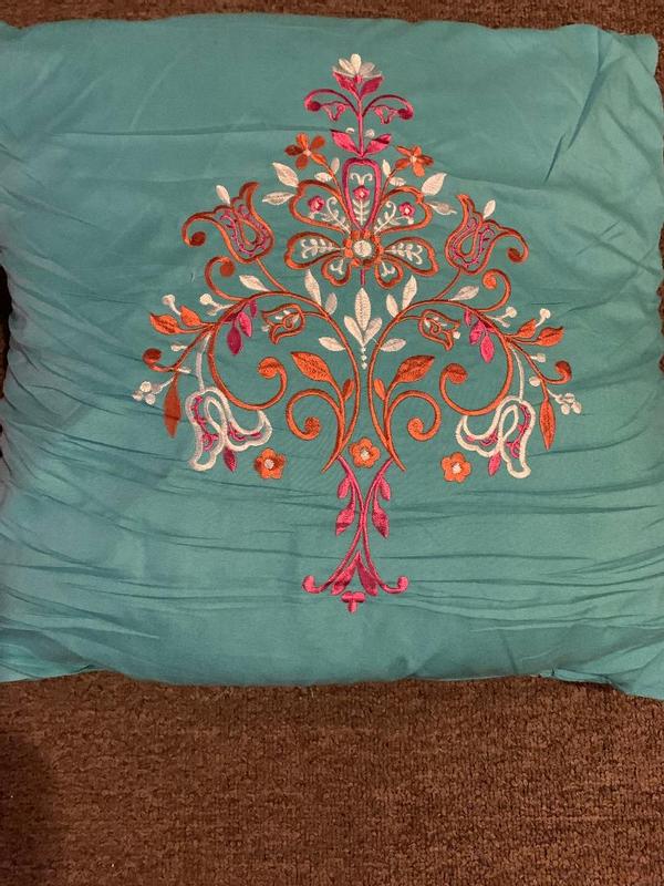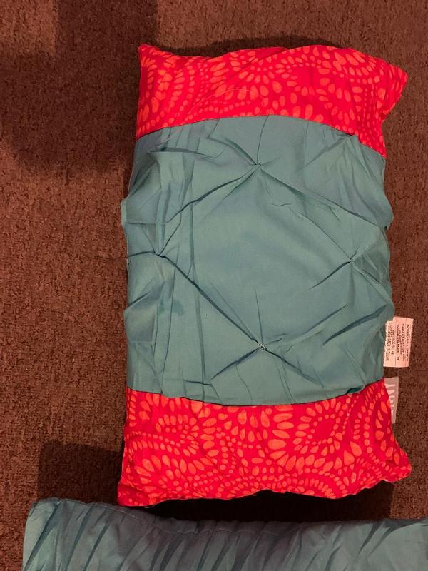 So the comforter set arrives, two days after it was supposed to be delivered. The two throw pillows that are included in the set are HORRIBLE! There are sooo many wrinkles and creases, that will never come out. Pillow covers do not zip off, so I am unable to wash/dry to fix the problem. NOT HAPPY!! They should have been packaged differently to avoid this.