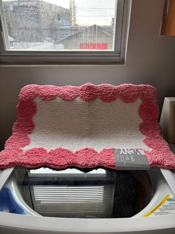 This bath rug is super cute and the color is actually more vibrant and pink than the product photo. The material is soft and plush, though I did give it 4 stars only because I wish it had a little extra cushioning. From our experience it’s quick drying and seems manufactured well so we don’t have to worry about it coming apart or fraying very easily.