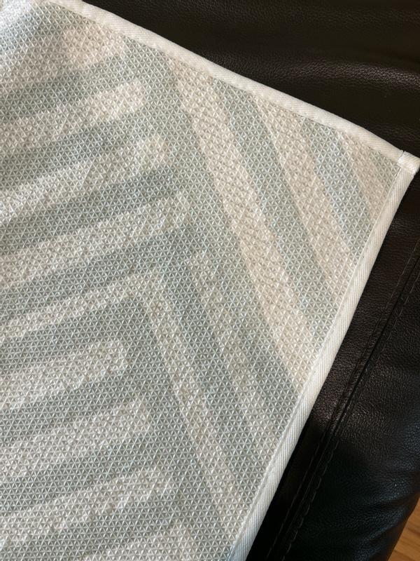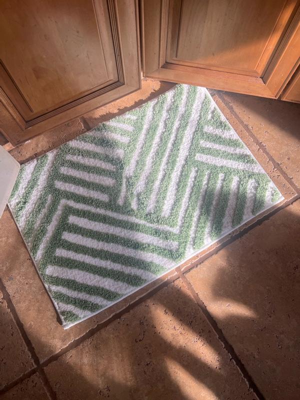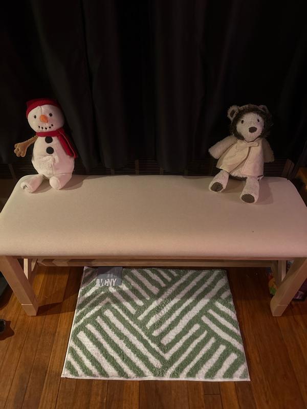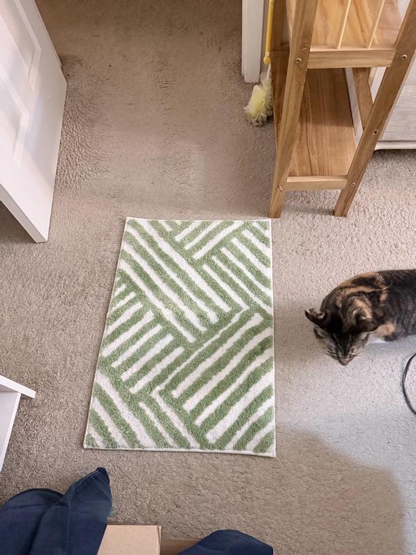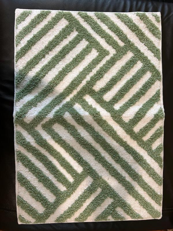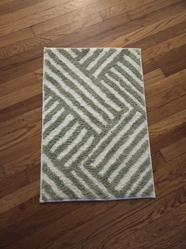 Love the pattern and light green color! It’s the perfect size for our small bathroom and goes well with our other decor. The material is soft and durable. It feels very cozy under bare feet