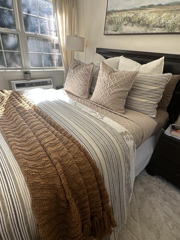 I always like white and this is looking real good and can’t wait to use it in my guest room I have bought same but for the king bed and had it the whole summer and doing great!